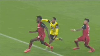 第12分钟,安德里希解围失误,吉滕斯小角度挑射破门,多特蒙德1-2扳回一球!